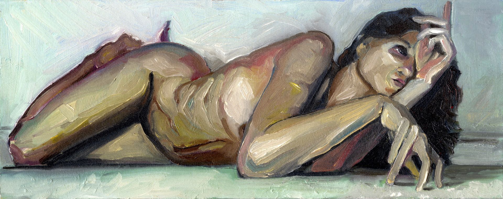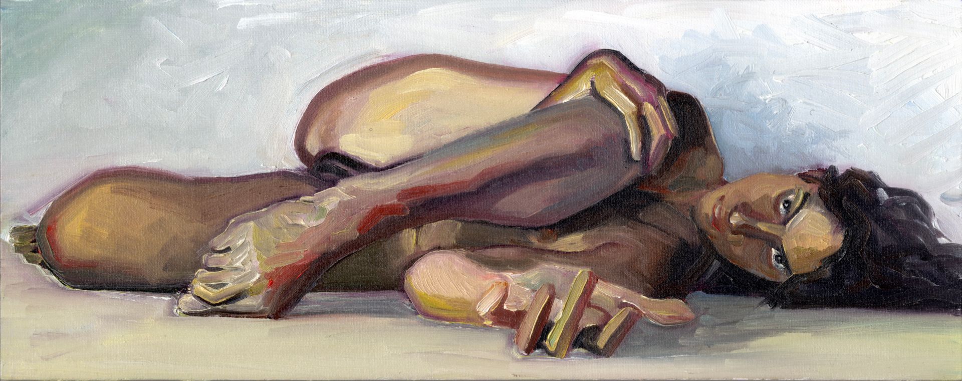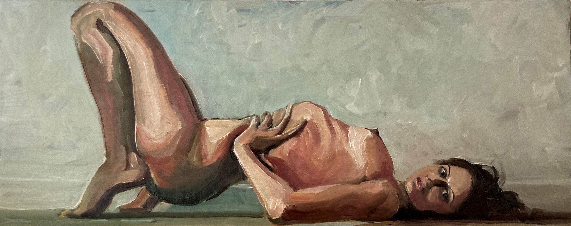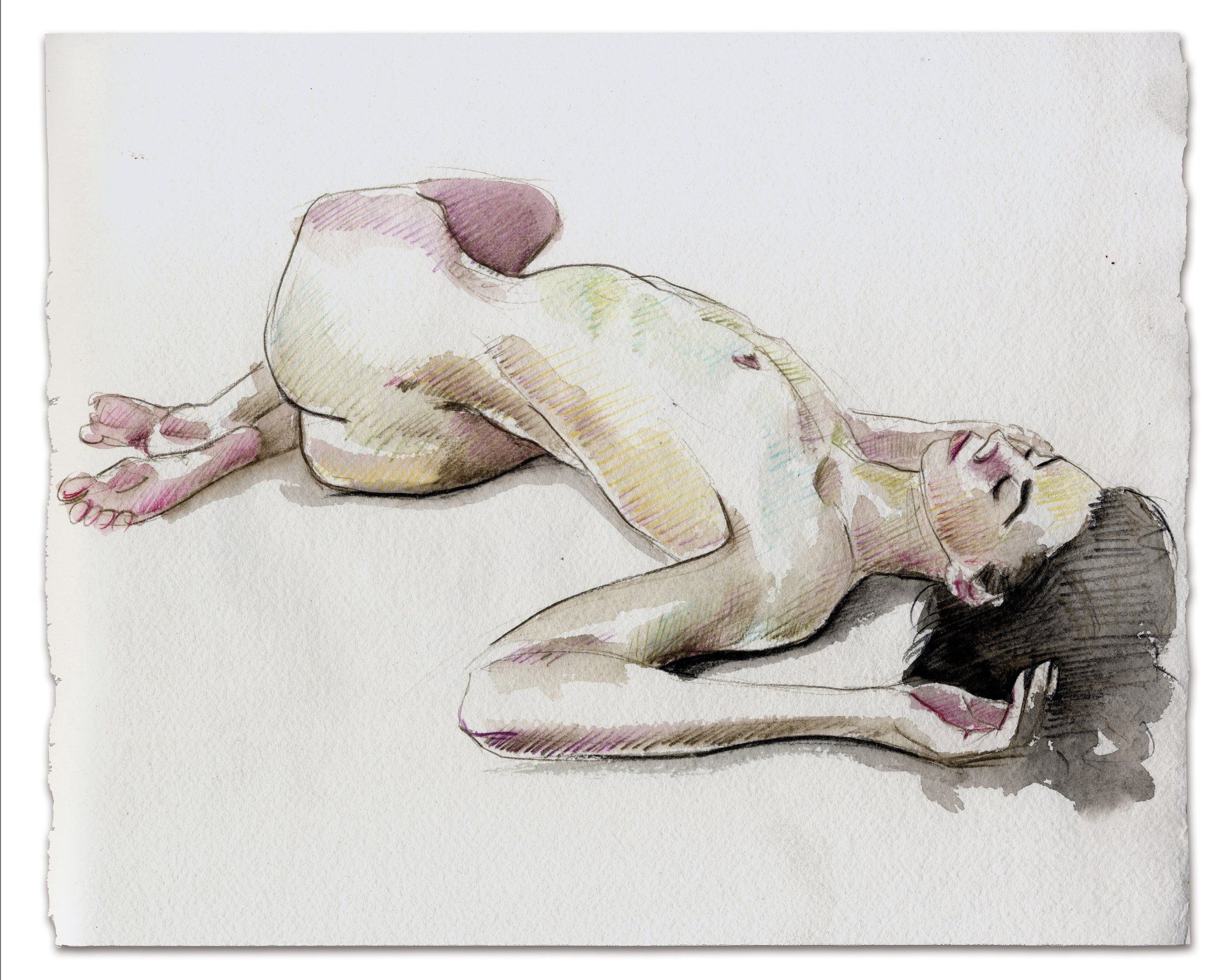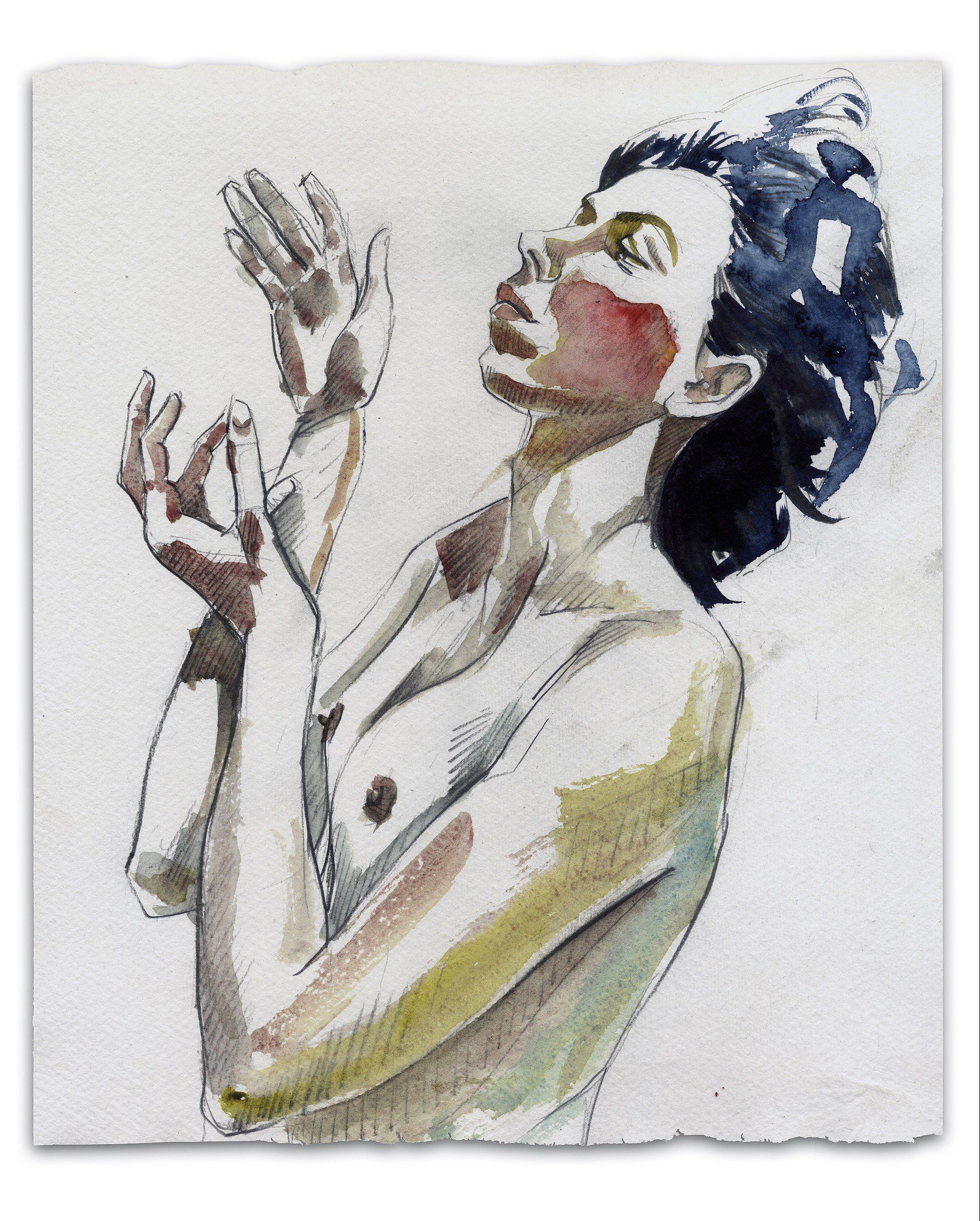 Contact me to arrange a one hour session where I will make up to five drawings of you in poses of your choice. This comprises some warm up sketches of five to ten minutes, followed by a longer twenty five minute painting. I then post the resulting unframed work to you.